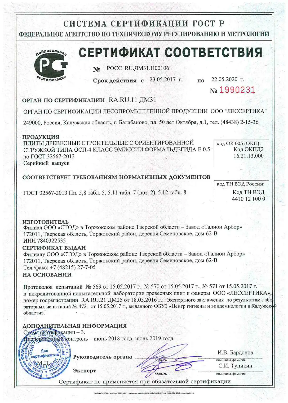 Подтвержденное сертификатами и действующими ГОСТ